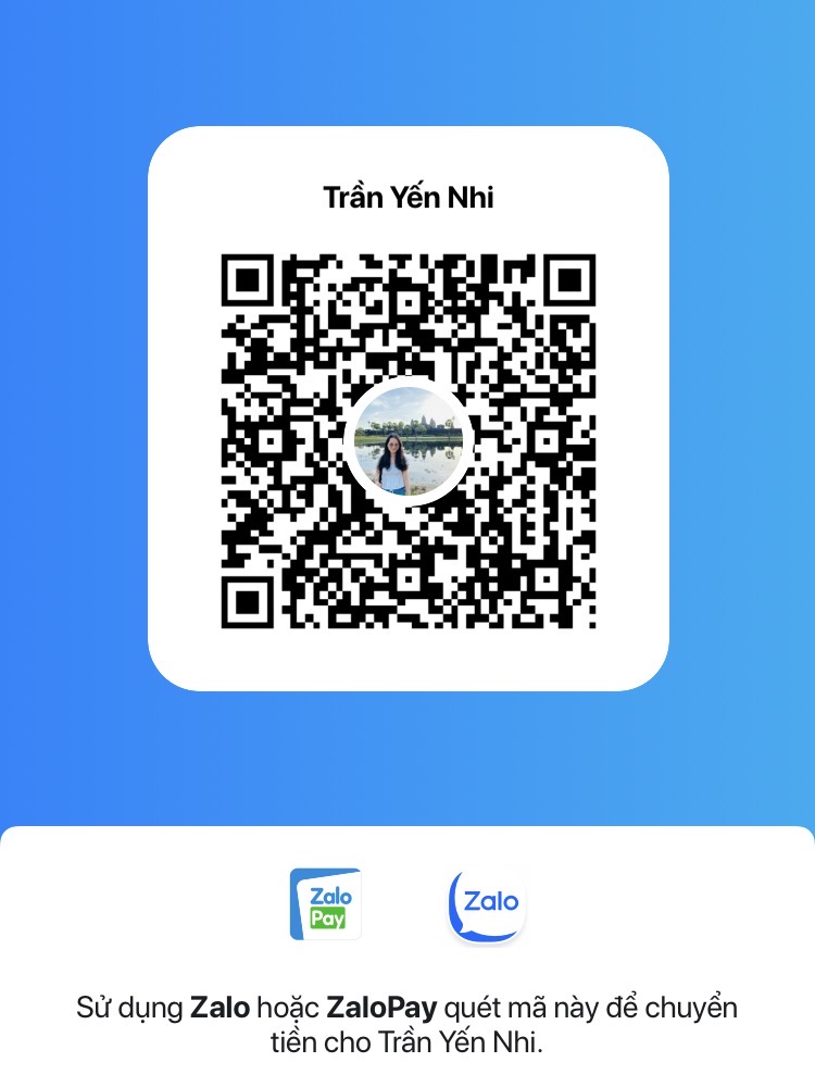 Nếu những bài viết của mình có ích cho bạn, bạn có thể cân nhắc ủng hộ cho mình thông qua các kênh sau: